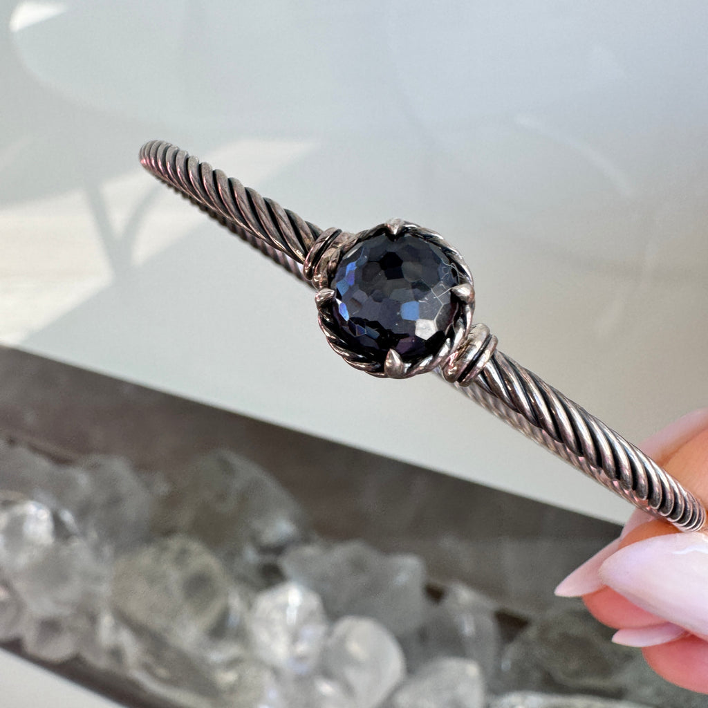 The David Yurman Chatelaine Bracelet in Sterling Silver with Amethyst, featuring a 3mm cable design and an amethyst gemstone.
