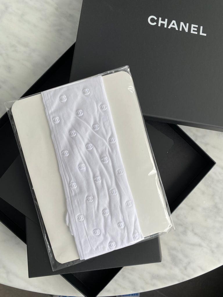 Chanel Runway White CC Logo Stockings, Size II-M.