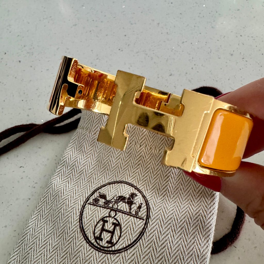 HERMES Wide Clic H Bracelet in yellow enamel with gold-plated hardware. Size M/L (GM).